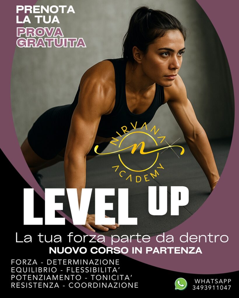 Level Up è un metodo di allenamento fisico adatto a tutti, ma molto intenso. È un’attività a corpo libero, solitamente senza musica e senza attrezzi, che sfrutta la resilienza e la determinazione del gruppo per il raggiungimento dei risultati. Adatta a chi cerca un allenamento intensivo di potenziamento ed efficace ma senza attrezzi. Sportivi, ex sportivi o principianti motivati, il motto sarà “La tua forza parte da dentro”. Ecco i principali benefici: migliora la forma fisica generale. Coinvolge tutto il corpo, forza, resistenza, equilibrio, flessibilità e coordinazione. Potenzia il sistema cardiovascolare grazie agli esercizi a ritmo sostenuto, aumenta la capacità cardiaca e respiratoria, aumenta la disciplina e la determinazione. È un allenamento mentalmente stimolante: richiede costanza, impegno e forza di volontà. Riduce lo stress e migliora l’umore. L’attività fisica intensa aiuta a scaricare le tensioni e stimola la produzione di endorfine. Favorisce il dimagrimento e la tonificazione grazie all’alto dispendio energetico e all’attivazione muscolare completa. Promuove il lavoro di squadra e lo spirito di gruppo anche se non è uno sport di squadra, il contesto collettivo rafforza la motivazione personale.